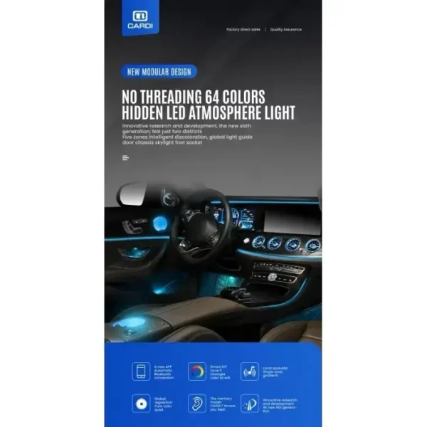 - Stylish 10-piece RGB ambient lighting kit from Cardi K3. Sound-activated, app + remote-controlled illumination. Hidden strip design for dash, doors, footwells, and cupholders. 🔹 About This Item: Universal fit for all cars 10 RGB-LED modules: dashboard + doors + footwells…