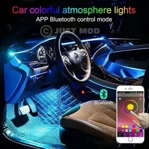 - Transform your car interior with the JUST MOD Interior Ambient Car LED Strip Lights, an RGB 5-in-1 kit featuring remote control, app integration, and music sync for a premium, stylish, and customizable lighting experience.