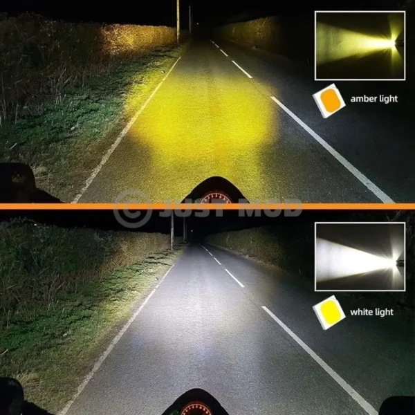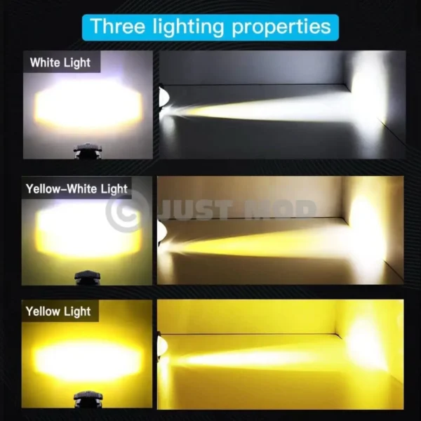 - The Just Mod HJG 4 LED Fog Lamp Dual Colour White/Yellow 12V 40W Super Bright light offers dual-mode illumination for all cars and bikes. With waterproof aluminum housing and plug-and-play setup, it ensures powerful, reliable lighting in every weather condition.