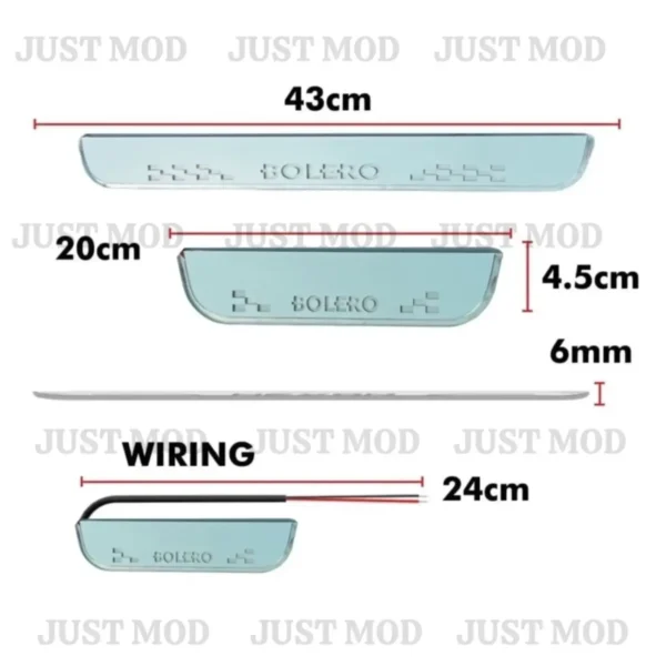 This set includes four sill plates—two for the front and two for the rear—offering full protection and uniform styling for all passengers. The bright blue LED lighting enhances nighttime visibility while giving your Bolero a premium and modern cabin ambiance.