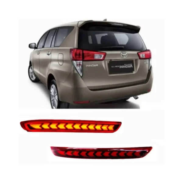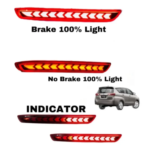 The Just Mod Innova Crysta Matrix Reflector Light features three functional modes — running light, brake light, and dynamic turn indicator. The unique Type C sequential indicator adds a premium, high-end appearance to your vehicle, giving it a bold and dynamic rear look while improving road safety.
