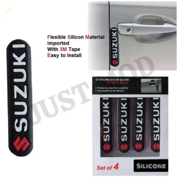 - The Just Mod Suzuki Rubber Door Guards provide strong protection against scratches, dents, and minor impacts. Made from flexible, durable rubber with high-strength adhesive tape, these guards fit all Suzuki models easily. The black finish blends neatly with any car…