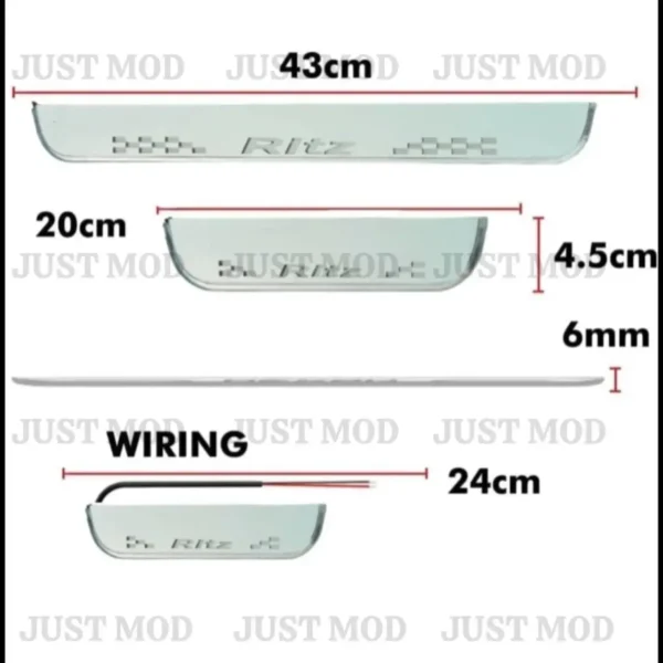 - The Just Mod Triber LED Sill Plate Set of 4 (Blue) brings premium protection and illuminated styling to your MPV. Made from durable stainless steel with a polished chrome finish and bright blue LED lighting, these plug-and-play scuff plates protect…