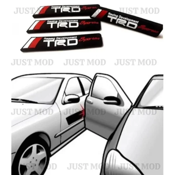- The Just Mod TRD Rubber Door Guards offer excellent protection against dents, scratches, and minor impacts. Made from flexible and durable rubber, these guards come with strong adhesive tape for easy installation. Suitable for all universal car models, the sleek…