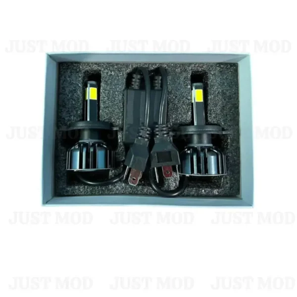 - The JUST MOD 85 Watt H4 LED White Light for car and bike delivers 6500K cool white brightness with a built-in heat fan and full metal body. Enjoy durable, energy-efficient, plug-and-play LED performance for safer night driving.